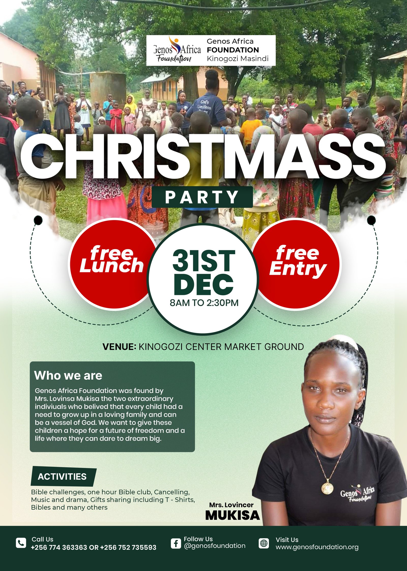 • Genos Foundation Africa struggles with grappling resources to support its activities. We need food for the growing number of Children.